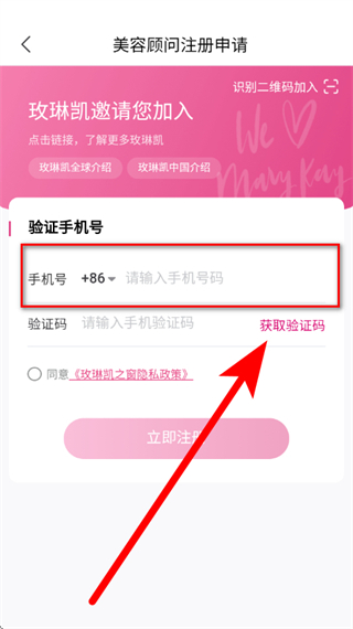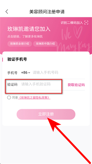 4、在驗(yàn)證碼輸入框中,輸入驗(yàn)證碼后,點(diǎn)擊立即注冊(cè)。