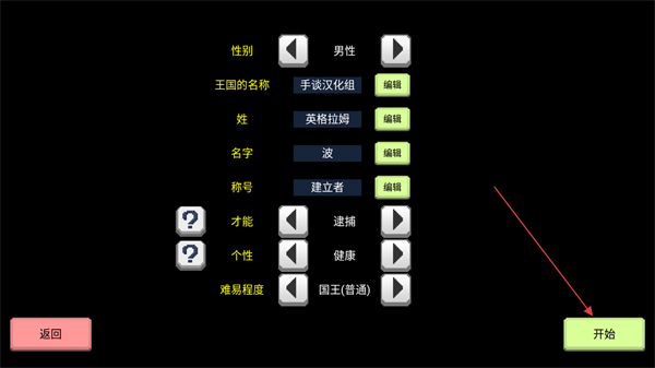 1、開始游戲后,開局玩家需要先創(chuàng)建一個屬于自己的王國,選擇自身性別才能個性等屬性。
