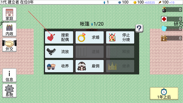 2、面對著剛建立起來的王國我們需要一個伙伴,點擊家庭選擇搜索配偶組建一個自己的家。