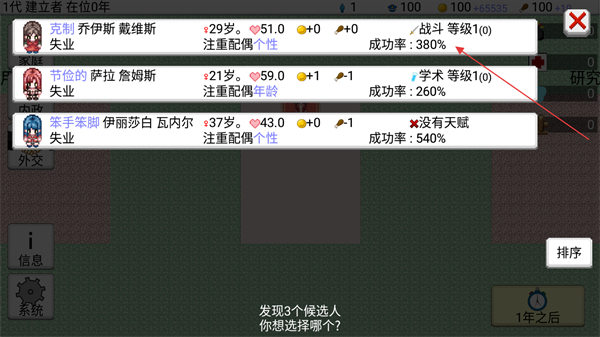 3、在下方列出的候選人中根據(jù)屬性以及配偶的詞條,選擇出一位喜歡的對象進行點擊。