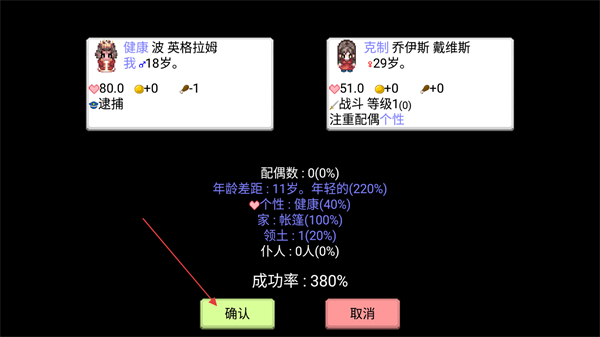 4、進入到婚配界面,可以看到雙方的年齡差距等各種匹配信息,點擊確認進行求婚。