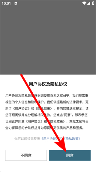 1、打開(kāi)乘龍之家,在彈窗中,點(diǎn)擊同意。