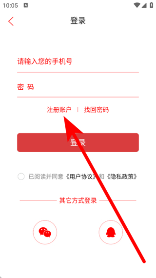 3、在登錄頁(yè)面,點(diǎn)擊注冊(cè)賬戶,進(jìn)入注冊(cè)頁(yè)面。