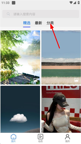 1、在圖片頁面,點擊分類標(biāo)簽,進入分類選擇頁面。