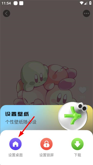 4、在設(shè)置選項(xiàng)窗口,點(diǎn)擊設(shè)置桌面選項(xiàng),即可將該壁紙?jiān)O(shè)為桌面壁紙。