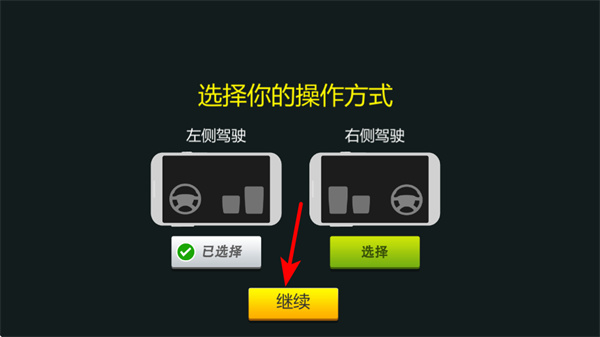 1、游戲初始需選擇駕駛操作方式左側(cè)或右側(cè)駕駛,操作方式的選擇需結(jié)合個人習(xí)慣,更順暢操控車輛。