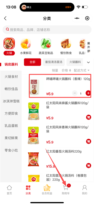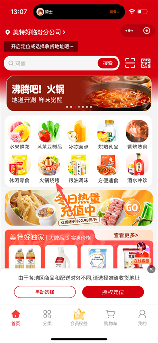 1、在美特好首頁,點(diǎn)擊火鍋燒烤分類選項(xiàng),進(jìn)入對應(yīng)商品列表頁面。