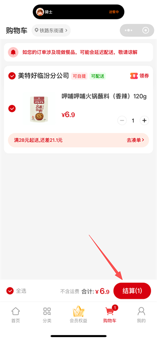 3、在購物車頁面,勾選商品后點(diǎn)擊結(jié)算按鈕,進(jìn)入訂單結(jié)算頁面。