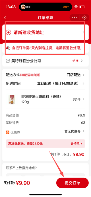 4、在訂單結(jié)算頁面,新建收貨地址后點(diǎn)擊提交訂單,完成購物流程。
