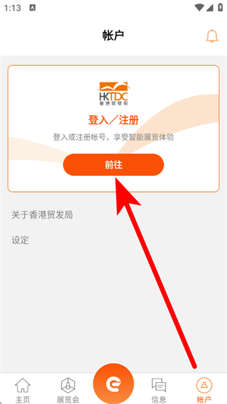 2、在帳戶頁面,點(diǎn)擊前往,進(jìn)入登錄頁面。
