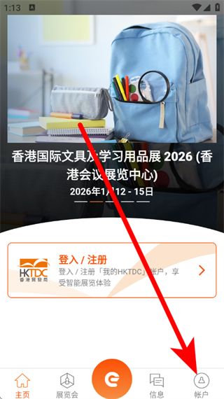 1、進(jìn)入首頁后,點(diǎn)擊底部帳戶,進(jìn)入頁面。