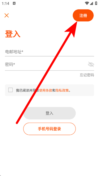 3、在登錄頁面,點(diǎn)擊右上角注冊,進(jìn)入注冊頁面。