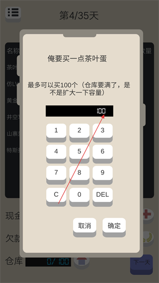 4、購買時注意倉庫容量,點(diǎn)擊上方鍵盤可以輸入要購買的數(shù)量。