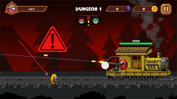1、操控火車武器瞄準(zhǔn)敵人射擊,注意躲避警告標(biāo)識(shí)下的敵人,積累戰(zhàn)斗經(jīng)驗(yàn)。