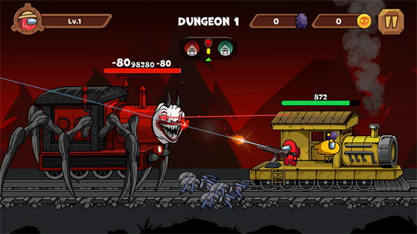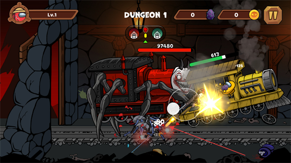 3、在洞穴場(chǎng)景中,繼續(xù)攻擊蜘蛛火車BOSS,同時(shí)清理周圍小怪,保持火力輸出。