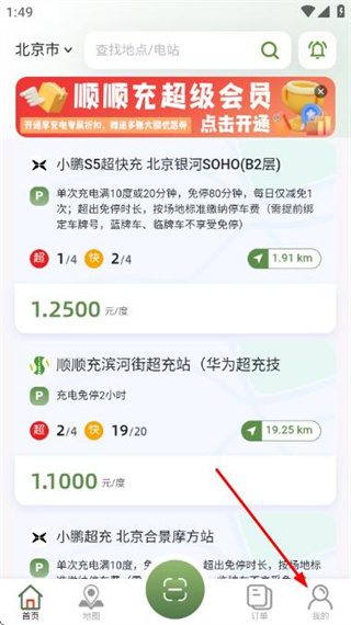 1、在順順充首頁點(diǎn)擊底部我的,進(jìn)入我的頁面。