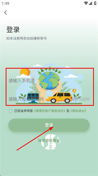 4、在登錄頁面填寫手機(jī)號和短信驗(yàn)證碼,勾選協(xié)議后,點(diǎn)擊登錄完成賬號登錄操作。
