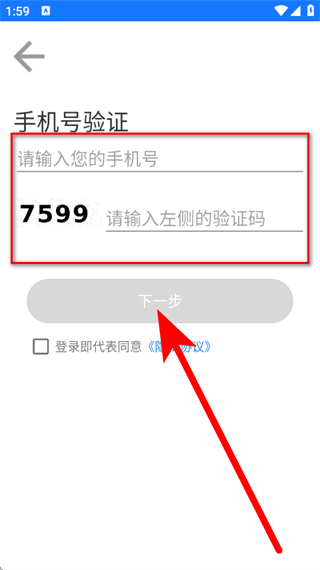 3、在手機(jī)號驗證頁面,輸入手機(jī)號及驗證碼,點擊下一步。