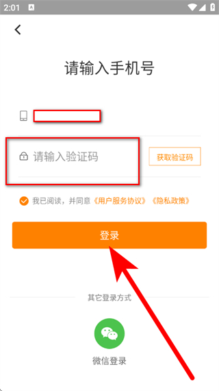 3、在登錄頁面,輸入手機(jī)號(hào)后,點(diǎn)擊獲取驗(yàn)證碼。