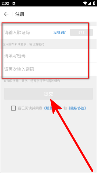 4、輸入驗證碼、設(shè)置密碼、確認(rèn)密碼,勾選后,點擊提交,完成注冊。