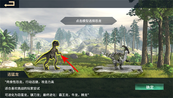 1、游戲初始可選擇恐龍,選擇時(shí)需關(guān)注恐龍的屬性行動(dòng)迅捷、攻擊力高,結(jié)合自身游戲風(fēng)格選擇,助力生存和戰(zhàn)斗。
