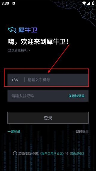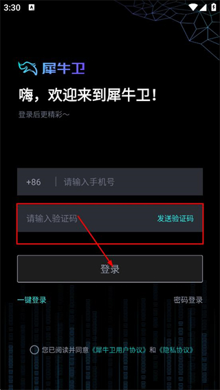 2、在驗(yàn)證碼登錄界面,輸入手機(jī)號(hào)碼,進(jìn)行下一步的操作。