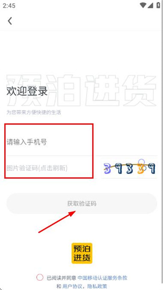 2、在登錄頁面填寫手機(jī)號和圖片驗(yàn)證碼,勾選相關(guān)協(xié)議后點(diǎn)擊獲取驗(yàn)證碼。