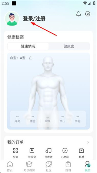 2、在個人頁面點(diǎn)擊登錄注冊,進(jìn)入登錄頁面。