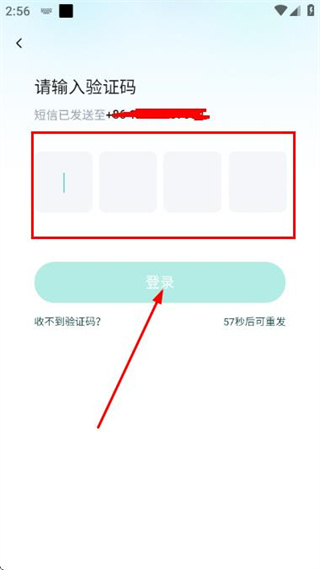 4、在驗(yàn)證碼輸入頁面填寫收到的驗(yàn)證碼,點(diǎn)擊登錄完成賬號登錄操作。
