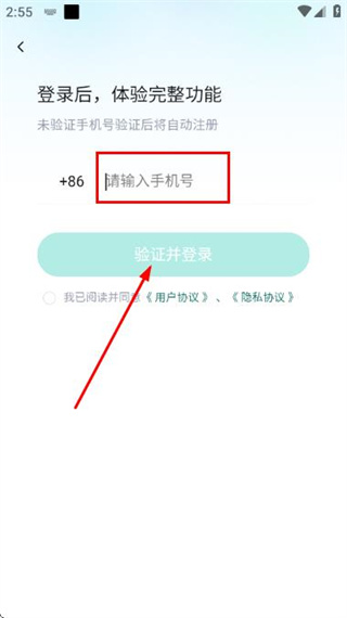 3、在登錄頁面填寫手機(jī)號,勾選協(xié)議后點(diǎn)擊驗(yàn)證并登錄。