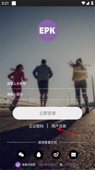 1、在EPK登錄頁面點擊用戶注冊,進(jìn)入手機(jī)號注冊頁面。