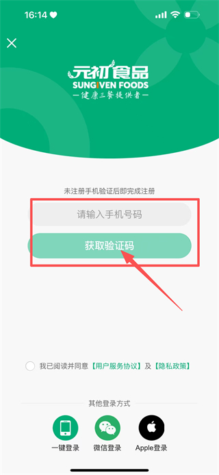 3、在登錄界面,輸入手機(jī)號碼,點(diǎn)擊獲取驗(yàn)證碼。