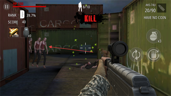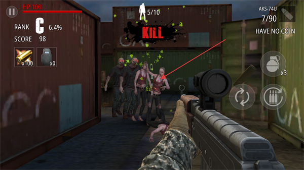 1、使用槍械瞄準僵尸射擊,消滅僵尸積累擊殺數(shù)和分數(shù)。
