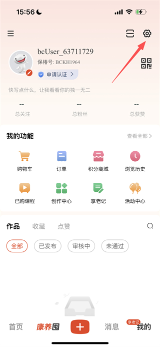 2、在個人頁面,點(diǎn)擊右上角設(shè)置圖標(biāo),進(jìn)入設(shè)置頁面。