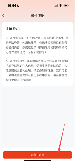 5、在賬號注銷頁面,閱讀后點(diǎn)擊同意并注銷,即可完成賬號注銷。