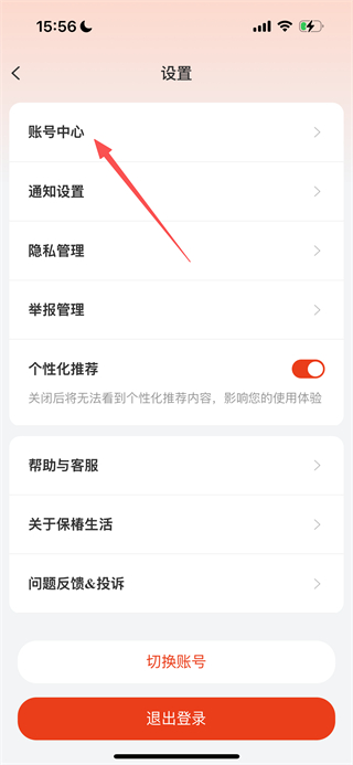 3、在設(shè)置頁面,點(diǎn)擊賬號中心選項(xiàng),進(jìn)入賬號中心頁面。
