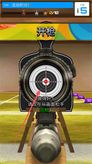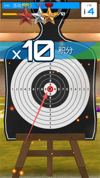 2、瞄準靶心開槍,命中可積累積分,提升活動積分。