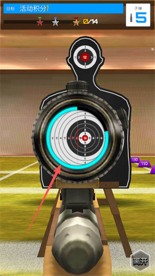 2、瞄準(zhǔn)靶心區(qū)域,待瞄準(zhǔn)圈穩(wěn)定后開槍。
