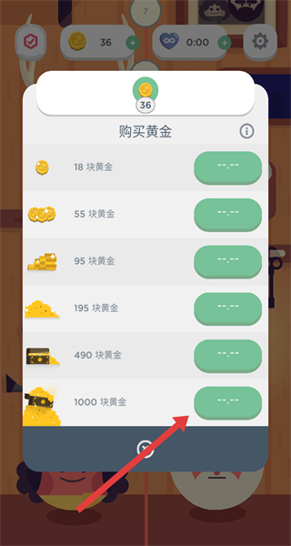 3、在購買黃金界面,選擇需要購買的金幣數(shù)量如1000金幣,點(diǎn)擊對(duì)應(yīng)的按鈕。