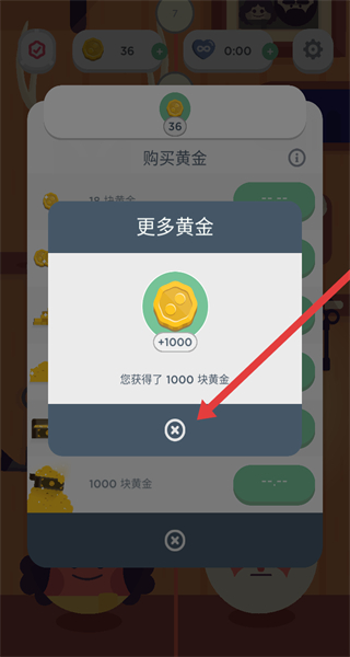 4、獲得金幣后,點(diǎn)擊關(guān)閉按鈕,可以重復(fù)次操作獲得金幣。