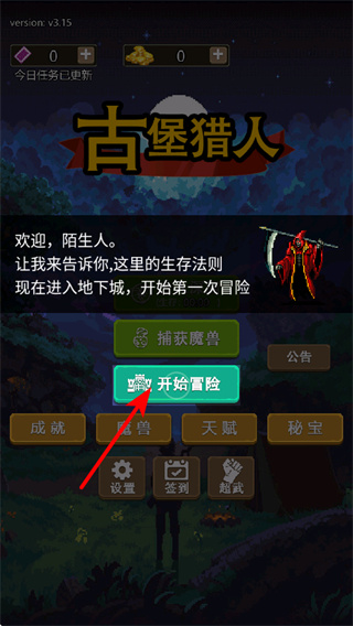 1、游戲中點擊開始冒險可進入地下城挑戰(zhàn),進入前可查看游戲功能選項,為冒險做好準備。