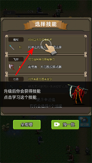3、選擇技能如針技能,選擇時需關(guān)注技能的效果如向靠近的敵人發(fā)射魔法彈,合理選擇以提升戰(zhàn)斗效率。