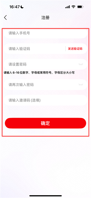 4、在注冊頁面,填寫信息后點擊確定,完成賬號注冊。