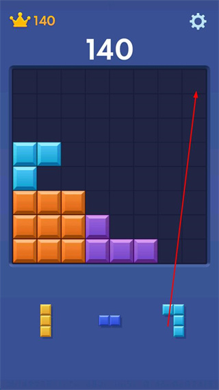 2、分?jǐn)?shù)達(dá)到140皇冠數(shù)量140時(shí),選擇右側(cè)藍(lán)色方塊向上移動(dòng),放置在頂部藍(lán)色方塊旁使同色相連。