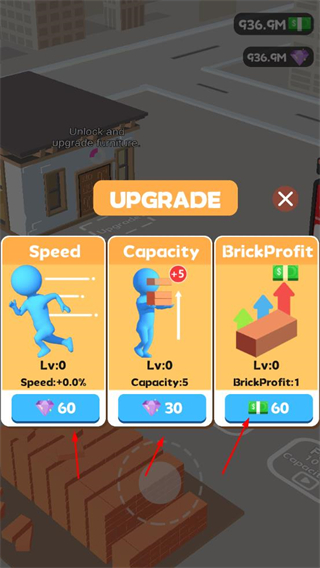 2、升級工人屬性,提升建筑效率,助力房屋建造。
