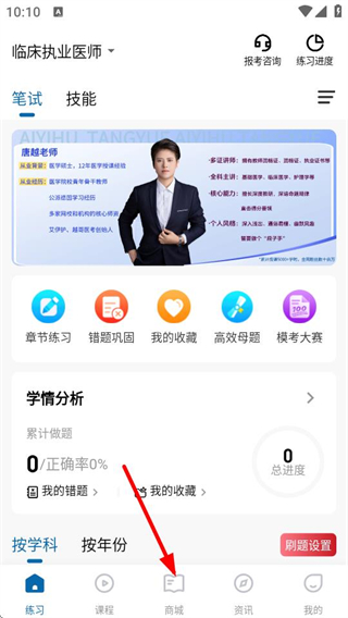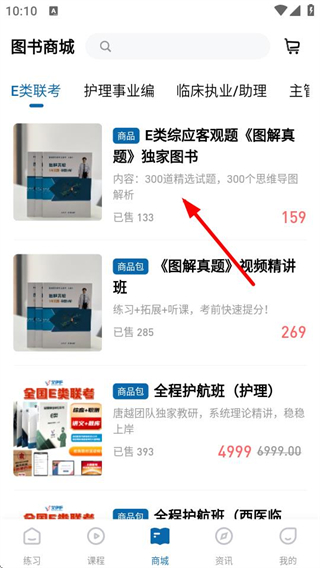 1、在練習(xí)頁面,點(diǎn)擊底部商城選項(xiàng),進(jìn)入圖書商城頁面。