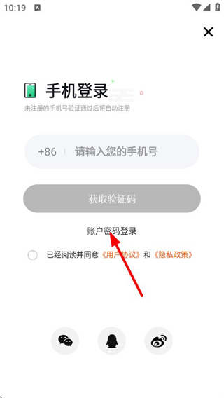 2、在登錄頁面,點(diǎn)擊賬戶密碼登錄選項(xiàng),切換至密碼登錄界面。