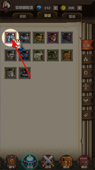 3、點(diǎn)擊英雄卡片可進(jìn)入英雄管理界面,進(jìn)入后可以查看英雄的屬性和技能,為英雄升級(jí)、進(jìn)階,提升英雄戰(zhàn)力。