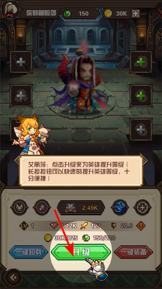 4、升級(jí)界面點(diǎn)擊升級(jí)可提升英雄等級(jí),升級(jí)時(shí)需消耗資源,等級(jí)提升英雄攻擊、防御等屬性增強(qiáng),助力后續(xù)戰(zhàn)斗。