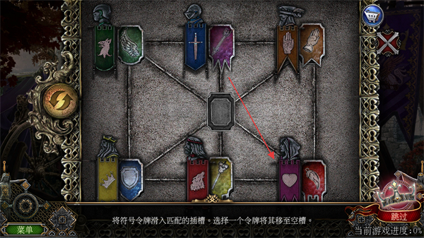 3、繼續(xù)匹配剩余令牌,如將手符號令牌移至右上角空槽,逐步填滿所有插槽。